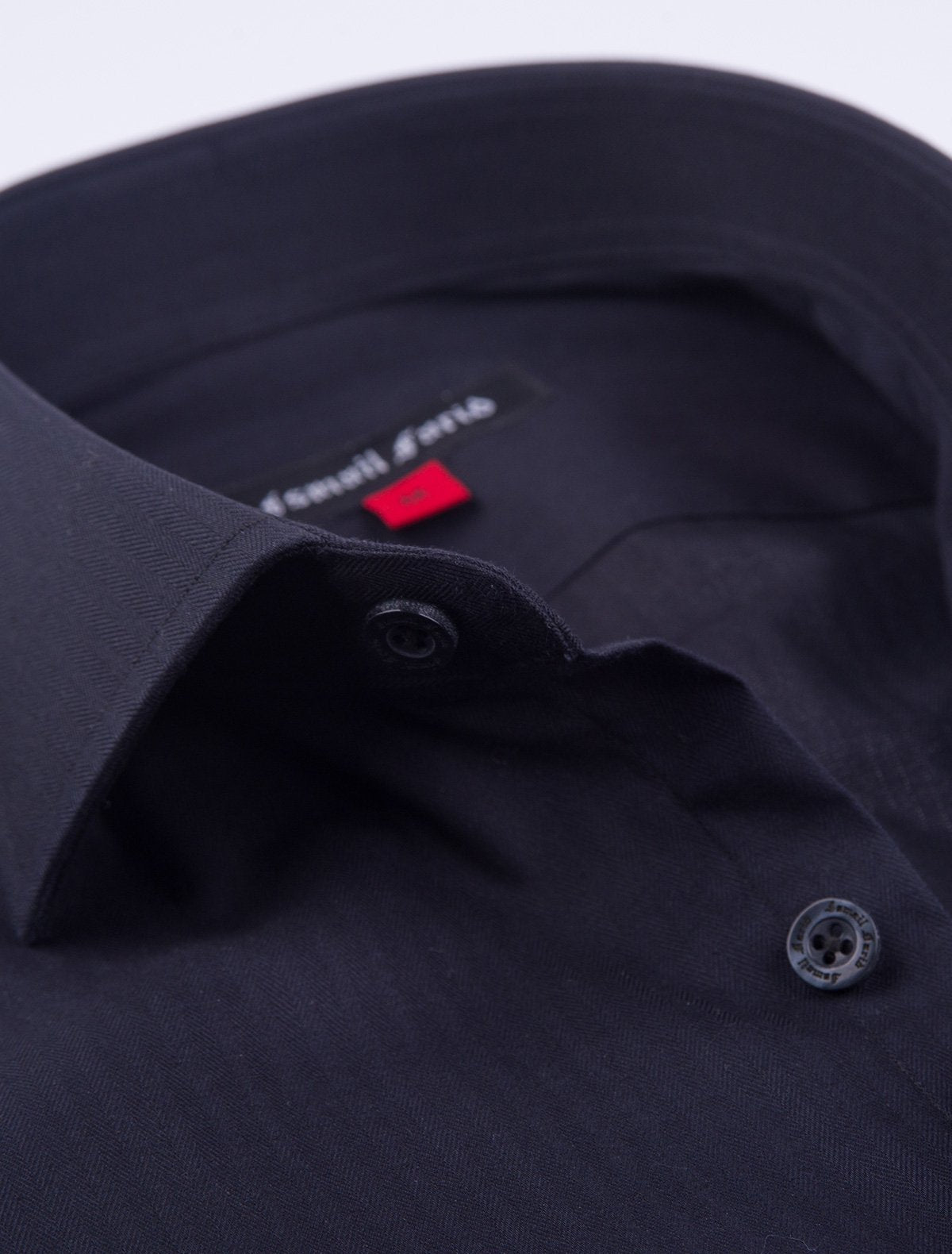 Classic black egyptian cotton harring bone shirt • Egyptian cotton fabric. • Cut collar. . Ismail Farid branded buttons.